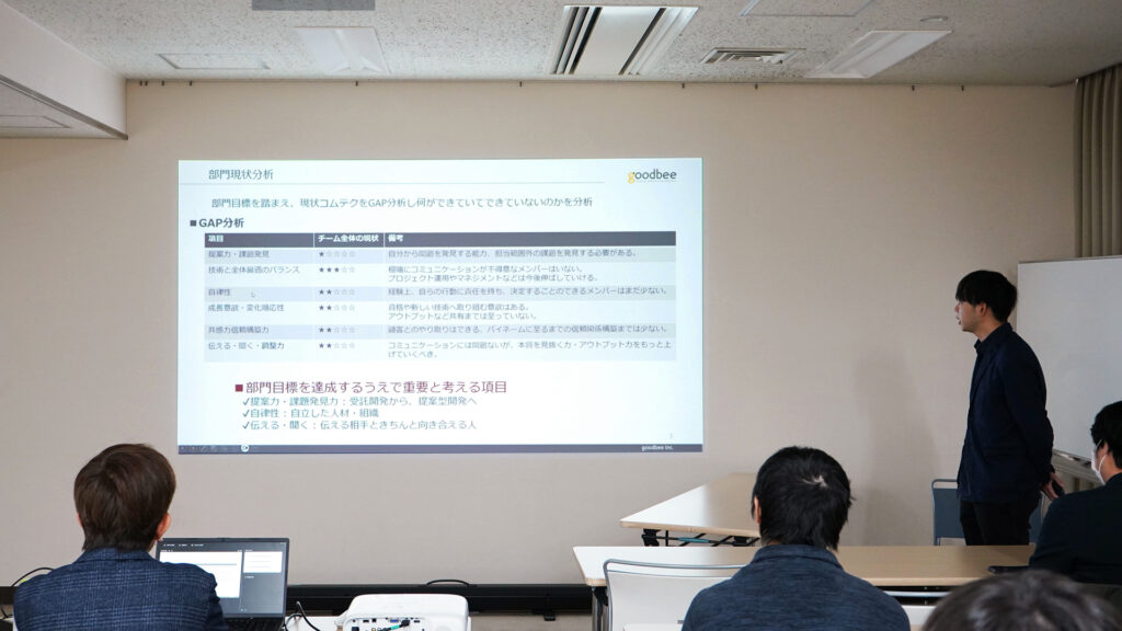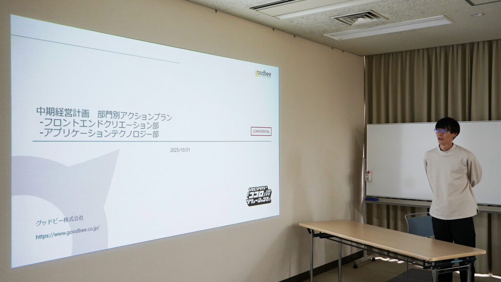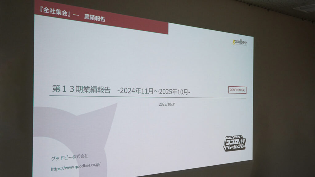 10月31日にグッドビーでは全社集会が行われました。この全社集会では、今回は中長期経営戦略の更新時期となり、「中期経営計画 goodbee future2030」を発表しました。この計画の背景には、「会社としての方向性を全社員が共有し、一丸となって未来を創っていく」という想いがあり、グッドビーでは全員が一堂に会する全社集会を開催しました。