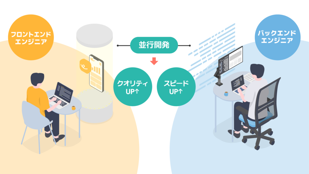 「分離」することで、フロントエンドとバックエンドのエンジニアが、互いの作業完了を待たずに並行して開発を進められるようになります。